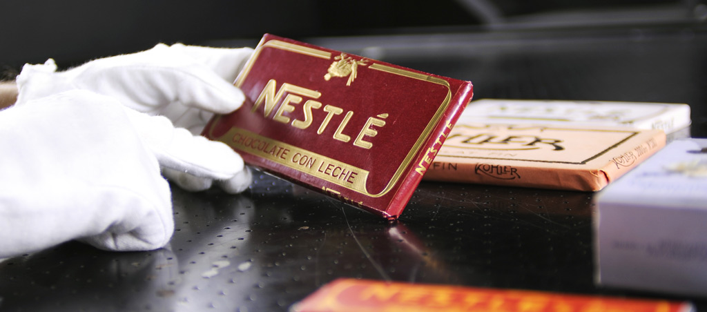 Nestlé España ha encargado a EGM el proyecto de reproducir y reconstruir físicamente una selección de cajas y envases originales de sus marcas de chocolate expuestos en el hall de su sede central en Esplugues del Llobregat, Barcelona.